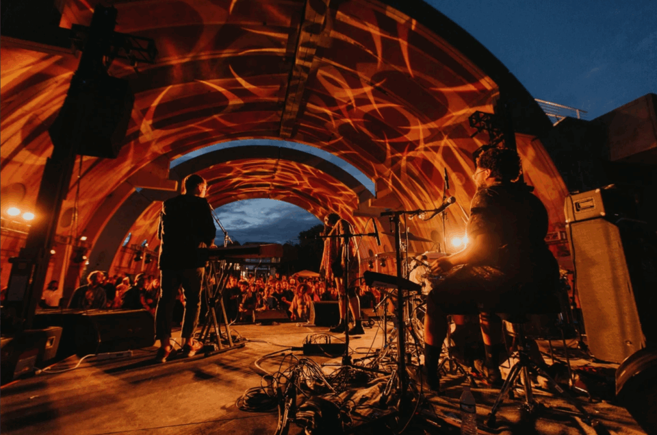 Professional production for outdoor music spaces. Weather planning, sound distribution, and audience experience optimization.